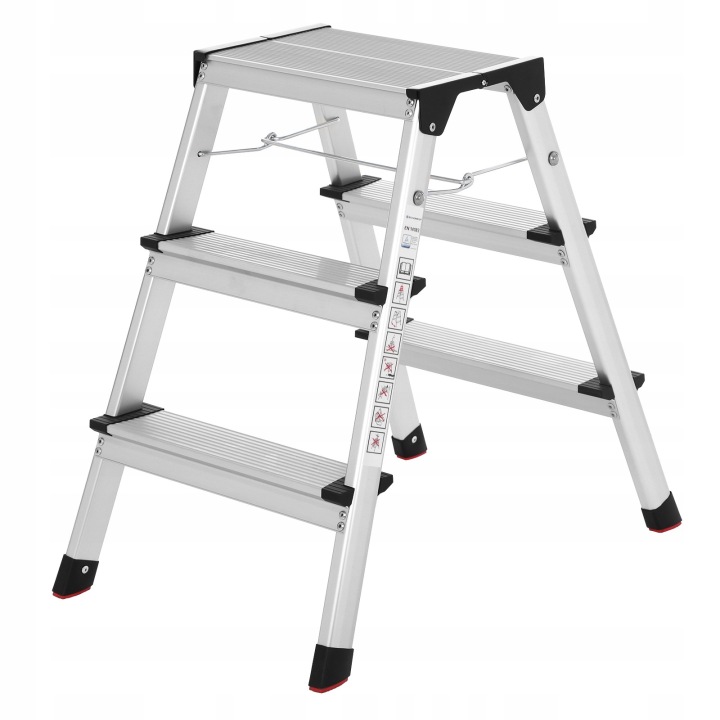Изготовленная из легкого, но прочного алюминия, серебристо-черная стремянка с 3 ступенями обеспечивает не только устойчивость, но и удобство транспортировки и хранения. Подушечки на ножках имеют форму «зубчиков», предотвращающих скольжение и обеспечивающих надежную фиксацию. Каждая ступенька шириной 12 см имеет рифление, что облегчает безопасный вход и выход с лестницы, кроме того, все края имеют защитные пластиковые заглушки. Идеально подходит для повседневного ремонта, покраски или работы в саду, он поможет вам получить доступ к труднодоступным местам, сохраняя при этом высокий уровень безопасности.