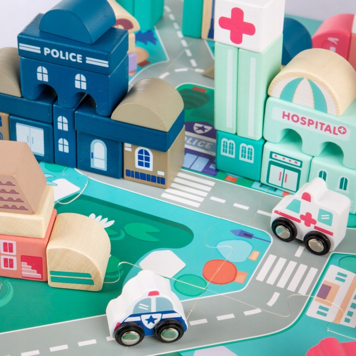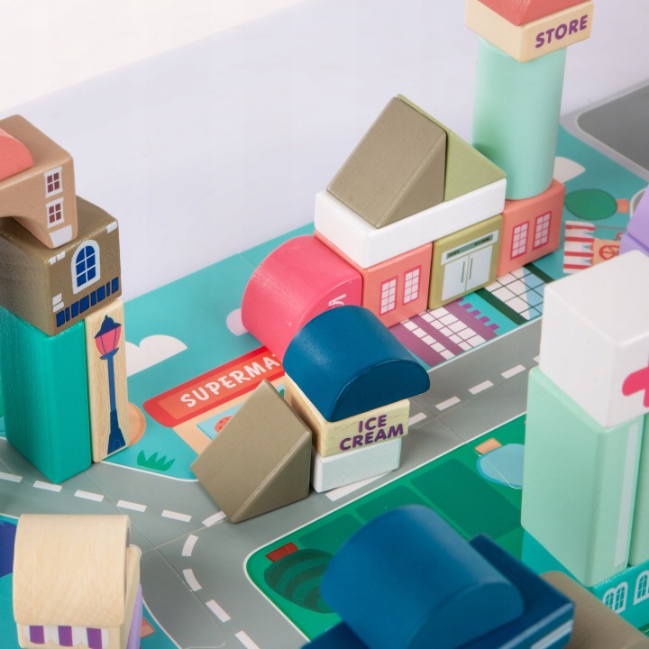 DREWNIANE KLOCKI ZESTAW DROGA MIASTO 115 ELEMENTÓW Wiek dziecka 3 lata +