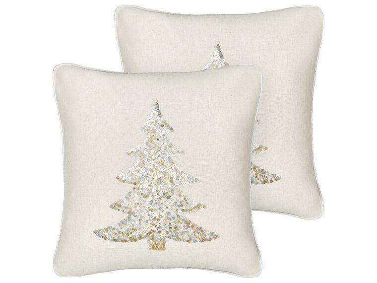Набір з 2 бавовняних подушок із візерунком «Різдвяна ялинка» 45 x 45 см Бежевий CLEYERA
