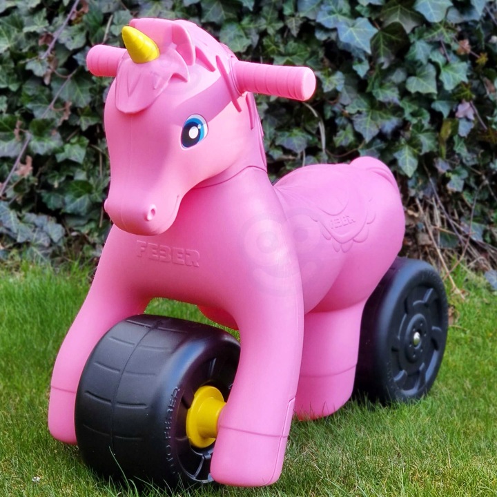 Безпечна їзда, розроблена авторитетним виробником іграшок, іспанським брендом Feber . Гарний рожевий єдиноріг стане мрією кожної дівчини!! Продукт призначений для дітей від 18 місяців. Райд-он має поворотне переднє колесо та зручне кермо. Широкі колеса забезпечують стабільність і довговічність. Гра з верхом допомагає розвивати моторику, підтримувати рівновагу, а також когнітивні навички. Іграшка виготовлена з високоякісного матеріалу, 100% безпечна для дітей . Виріб призначений для ігор як на вулиці, так і в будинку.