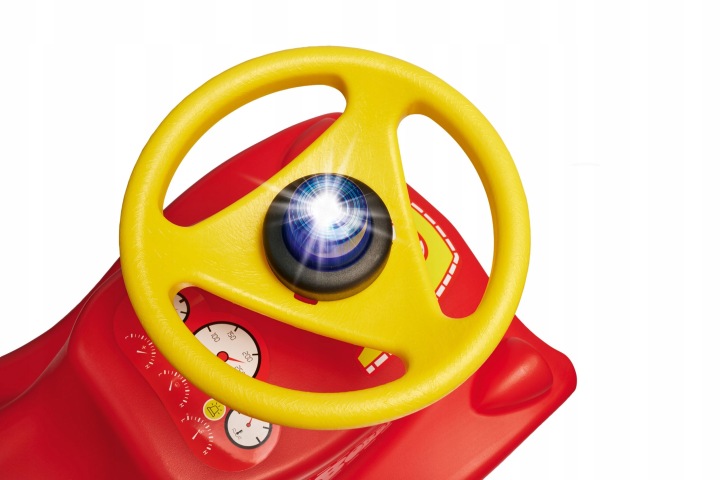 Автомобіль має унікальний червоний колір за зразком пожежних машин . Він оснащений кермом із звуковим сигналом, що дає дитині більше вражень під час гри .