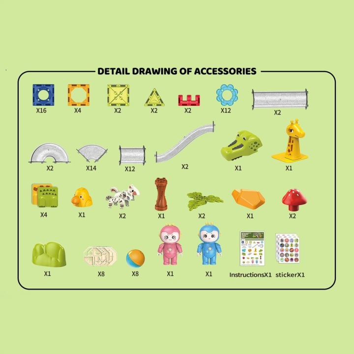 Магнітні блоки WOOPIE М'яч Трек Тваринний Рай 104 шт.