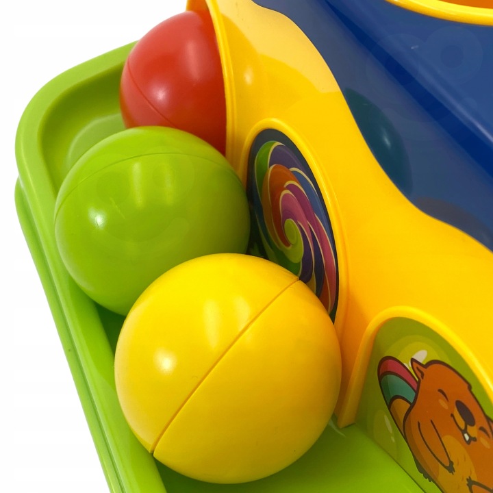 Барвистий пунш від WOOPI - це іграшка, яка сподобається кожній дитині. Дружні та теплі кольори та зручний молоток заохотять кожну дитину до гри . Під час гри у дитини розвивається точність рухів рук , спритність і все краще розрізняє кольори , а в майбутньому набута точність рухів і спритність полегшать дитині навчання письма . Дитина використовує молоток, щоб бити по кульках, які ковзають по доріжці, щоб малюк міг спостерігати, як котяться кульки.