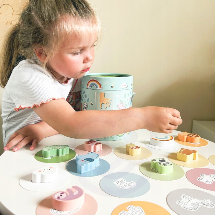 Mystery Box від Woopie — чудова багатофункціональна гра , яка забезпечить як самостійне, так і соціальне задоволення. Гра містить 15 дерев’яних фігурок, включаючи тварин, гриб, веселку та милу хмаринку, захованих у таємничій коробці. Діти обирають одну з 15 карток , тягнуться до коробки, дотиком знаходять фігуру, вказану на малюнку, і вивчають її форму. The Mystery Box — оригінальна гра, яка користується великою популярністю. Розвиває у дітей відчуття дотику. розвиває дрібну моторику та увагу. У наборі є багато варіантів творчих ігор, наприклад, з’єднання пар, вивчення кольорів, назв тварин і складання.