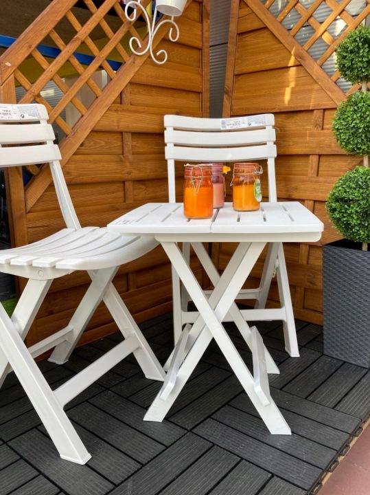 Стіл туристичний з білого пластику для тераси, балкона, кемпінгу, розміри: 50х44х44 см.