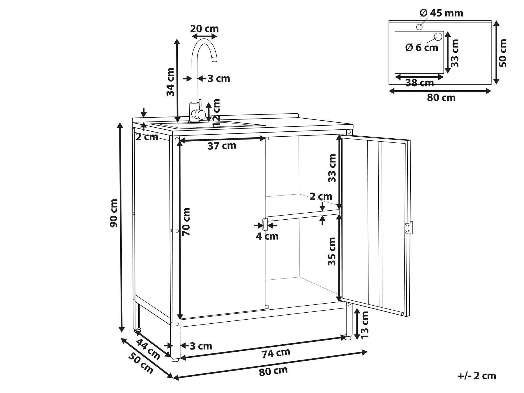 Розроблена з урахуванням максимальної зручності, ця кухонна шафка для вулиці оснащена двома дверцятами та місткими полицями для зберігання речей. Це дозволяє залишатися на зв'язку з гостями під час приготування їжі на відкритому повітрі, усуваючи необхідність постійно ходити на кухню вдома. Виготовлений із нержавіючої сталі з порошковим покриттям, повністю готовий до експлуатації на відкритому повітрі, що гарантує його довговічність. Практичний дизайн також включає раковину з краном і простору стільницю, що ідеально підходить для приготування салатів або використання як гриль, щоб ви могли насолоджуватися радістю приготування їжі на відкритому повітрі.