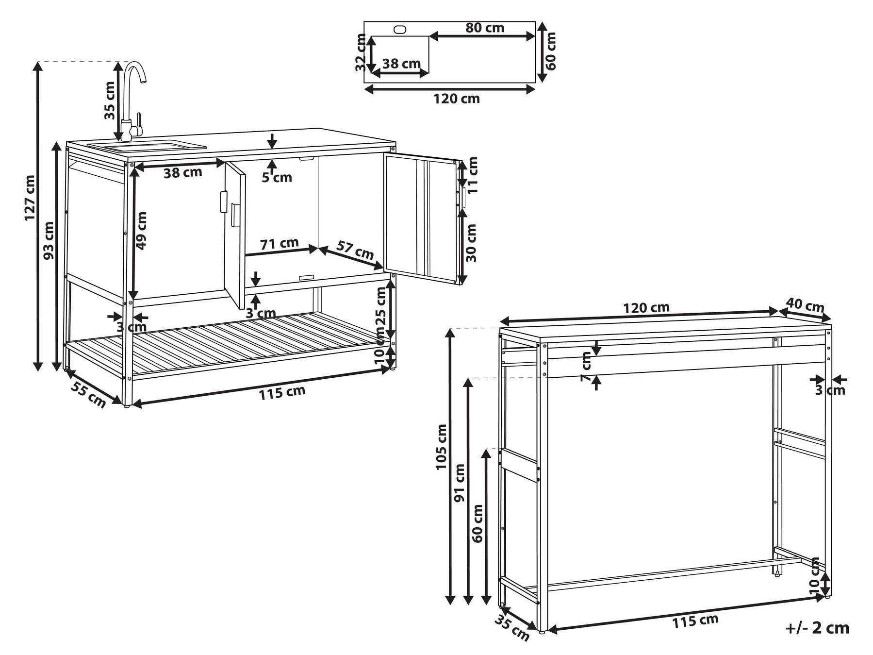 Ця двокомпонентна садова кухня з мийкою та барним столом ідеально підходить для приготування їжі на відкритому повітрі та поєднує в собі елегантний зовнішній вигляд та довговічність. Верхня частина з нержавіючої сталі та порошкове покриття сталі гарантують стійкість до погодних умов. Відкрита полиця забезпечує легкий доступ до кухонного приладдя та інгредієнтів, а практичний простір для зберігання допомагає тримати все необхідне організованим та під рукою.
