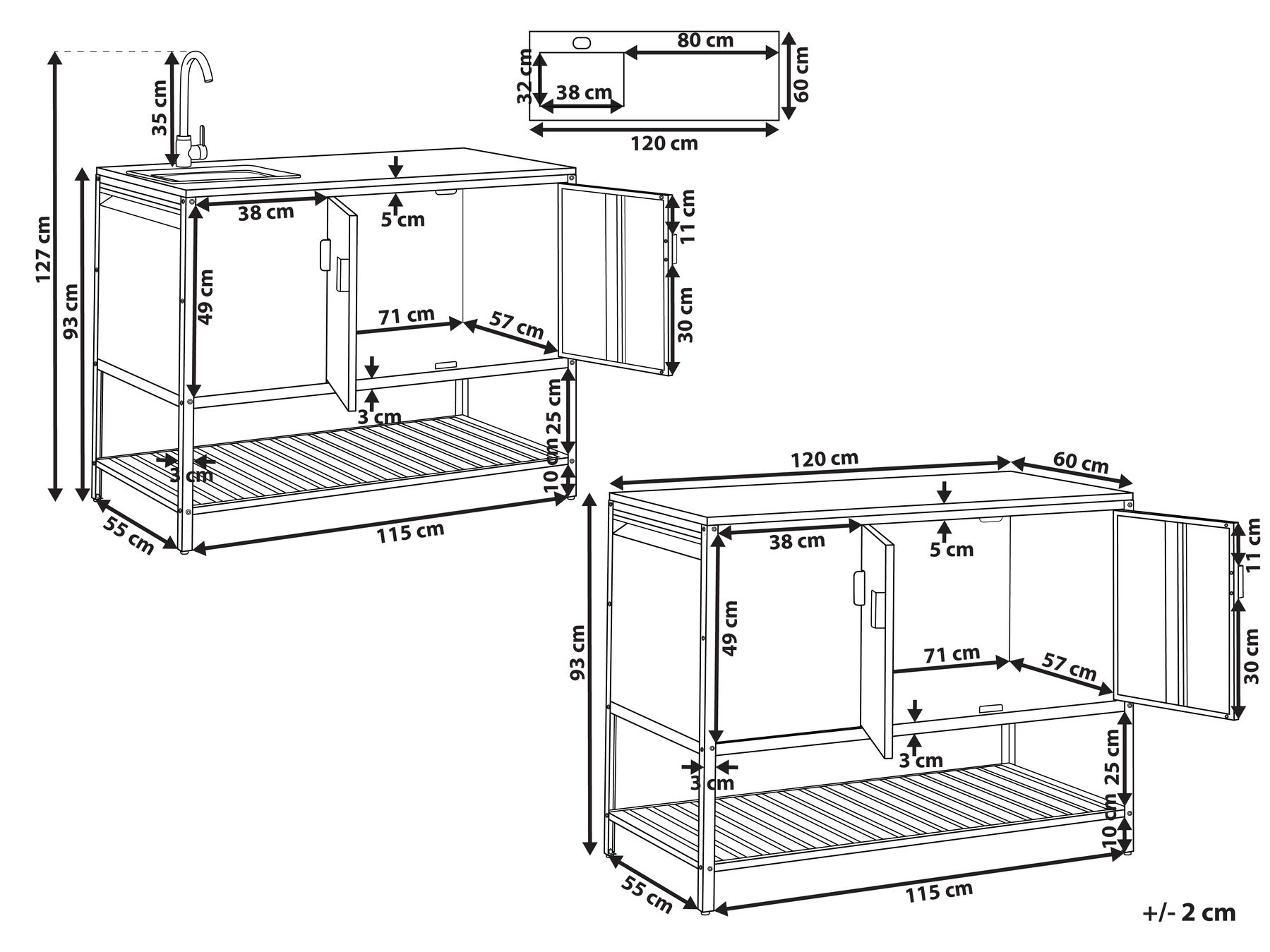 Ця садова кухня з мийкою ідеально підходить для приготування їжі на відкритому повітрі та поєднує в собі елегантний зовнішній вигляд та довговічність. Верхня частина з нержавіючої сталі та порошкове покриття сталі гарантують стійкість до погодних умов. Відкрита полиця забезпечує легкий доступ до кухонного приладдя та інгредієнтів, а практичний простір для зберігання допомагає тримати все необхідне організованим та під рукою.